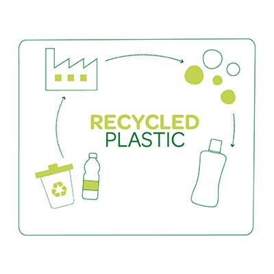 •Στη χρήση συσκευασιών κατασκευασμένων εξ ολοκλήρου (100% φιάλες) ή μερικώς (50% σωλήνες) από ανακυκλωμένο πλαστικό.